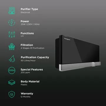With a filter life of 6000L, this water purifier ensures long-lasting usage. It is designed to handle total dissolved solids (TDS) of up to 200mg/L, making it suitable for various water sources.