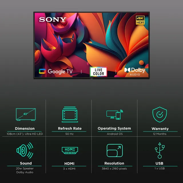 Featuring an easy-to-use operating system, this SONY smart TV provides intuitive navigation and immediate access to apps, streaming services, and settings. Moreover, this Wi-Fi TV opens up a world of entertainment with a wide range of fun apps, including Netflix, ZEE5, Prime Video, and Disney+ Hotstar.